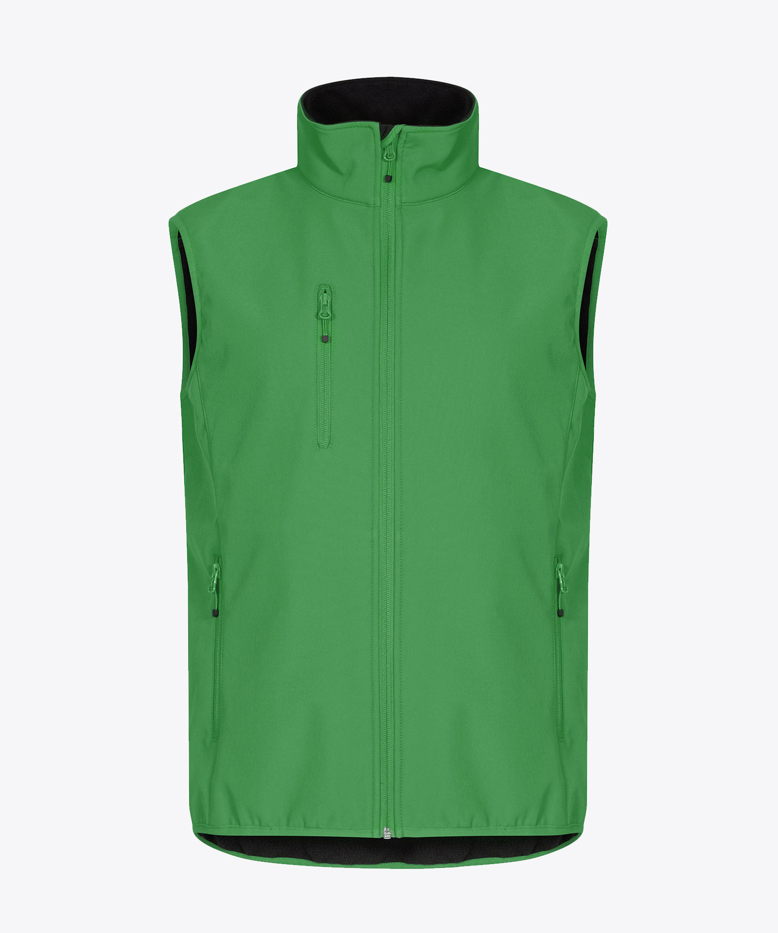 Unsere 3-lagige Softshell-Weste mit recyceltem Polyester. Ton-in-Ton umgekehrter Reißverschluss in der