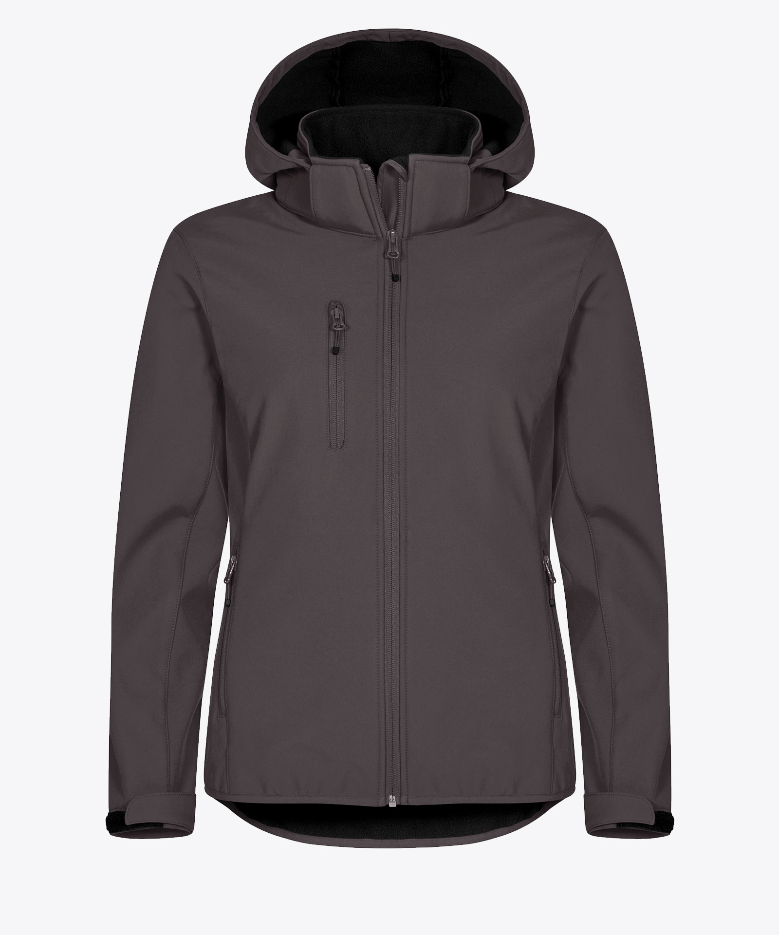 Unsere 3-lagige Kapuzen-Softshell-Jacke aus recyceltem Polyester. Ton-in-Ton umgekehrter Reißverschluss