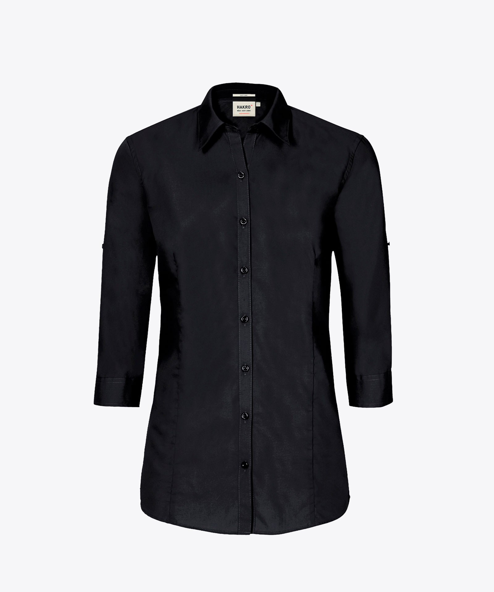 Besonders strapazierfähige Dreiviertelarm-Bluse mit Kent-Kragen. Variierbare Ärmellänge durch Lasche und Knopf am Oberarm, weitenverstellbare Manschetten. Knöpfe Ton in Ton, Doppelkappnaht an den Seitennähten und leicht gerundeter Saum. Besonders pflegeleichtes und funktionelles Gewebe aus MIKRALINAR®, dem HAKRO Performance-Materialmix aus Baumwolle und Polyester. Verfügbar auch als Unisexmodell. Normale