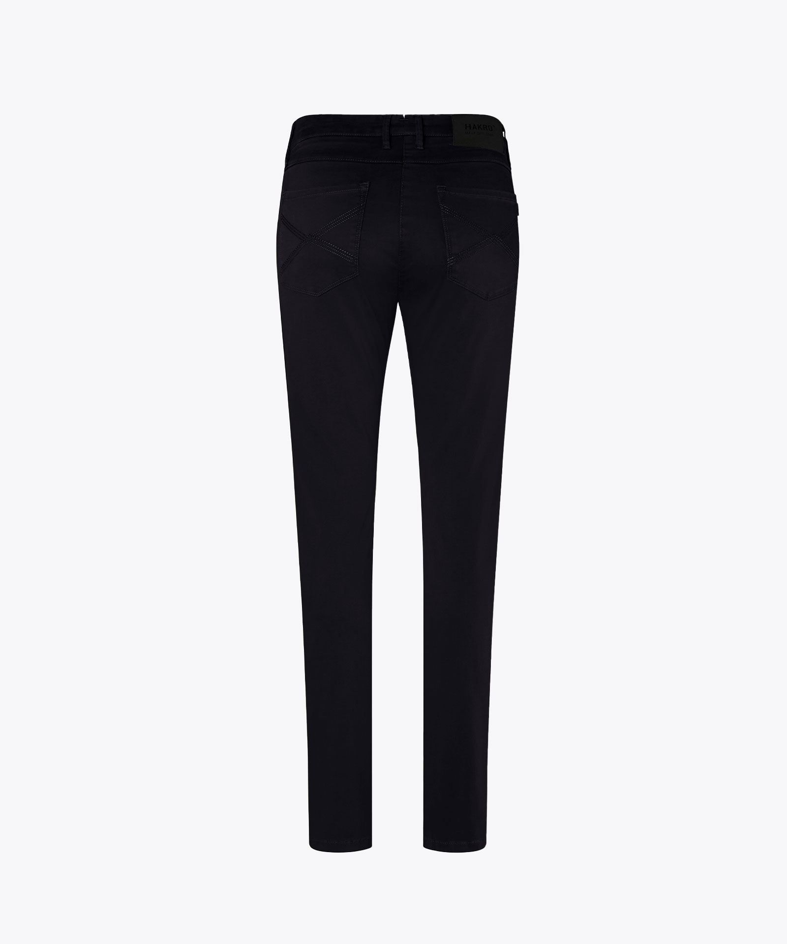 Leger geschnittene Chinohose im 5-Pocket-Design. Zwei Eingrifftaschen, Münztasche, zwei Gesäßtaschen, Gürtelschlaufen und Reißverschluss von YKK®. Dekorativer Knopf mit HAKRO Schriftzug und Patch am hinteren Bund. Stickerei auf den Gesäßtaschen, am Reißverschlussuntertritt und am Bund. Paspelierung mit Futterstoff am Innenbund sowie an den unteren Außenbeinnähten, so dass die Hose auch gekrempelt getragen