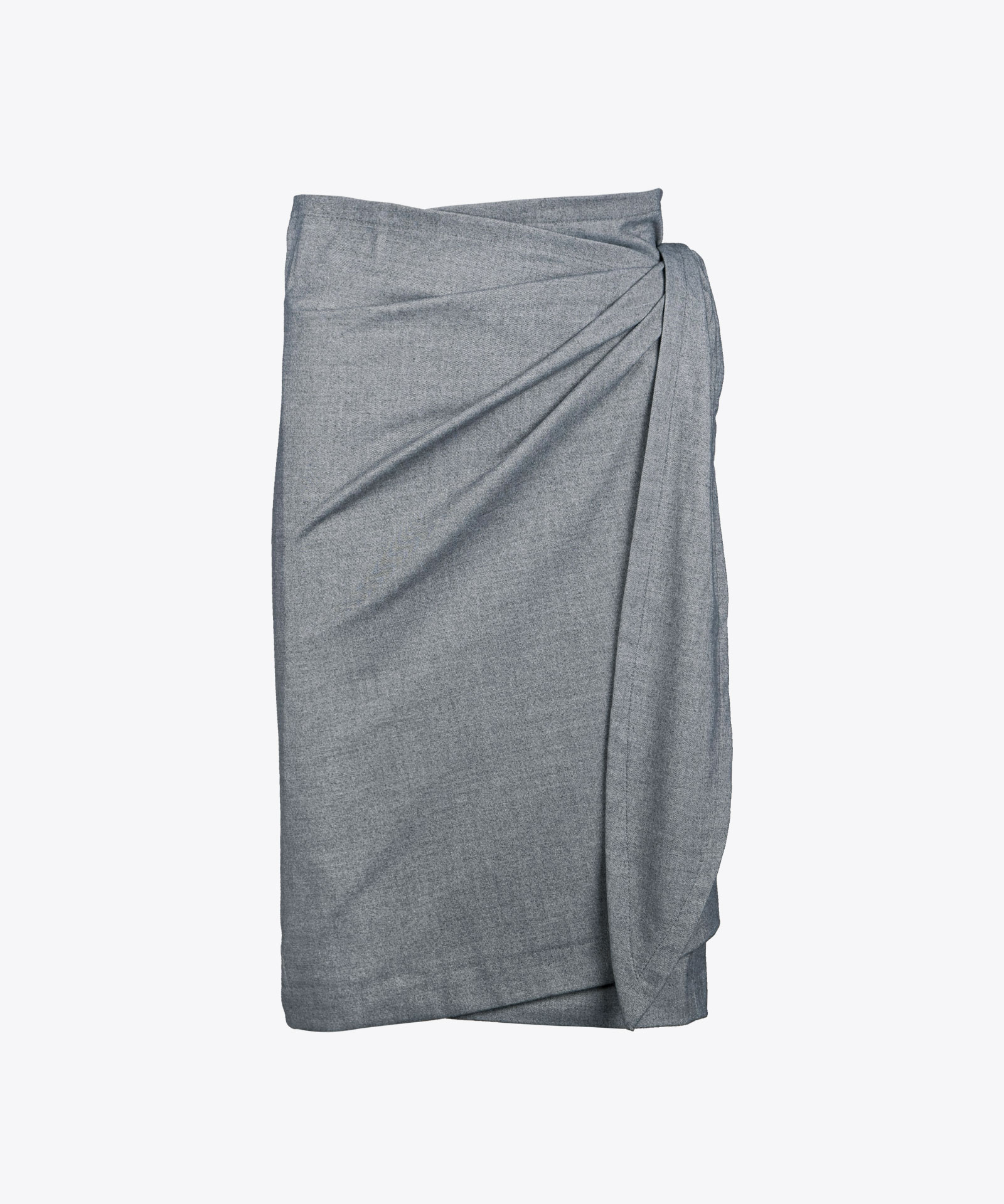 Asymmetrischer Wickelrock aus waschbaren Twill; variable Weitenregulierung durch seitliches Binden; Länge knieumspielend; ungefüttert