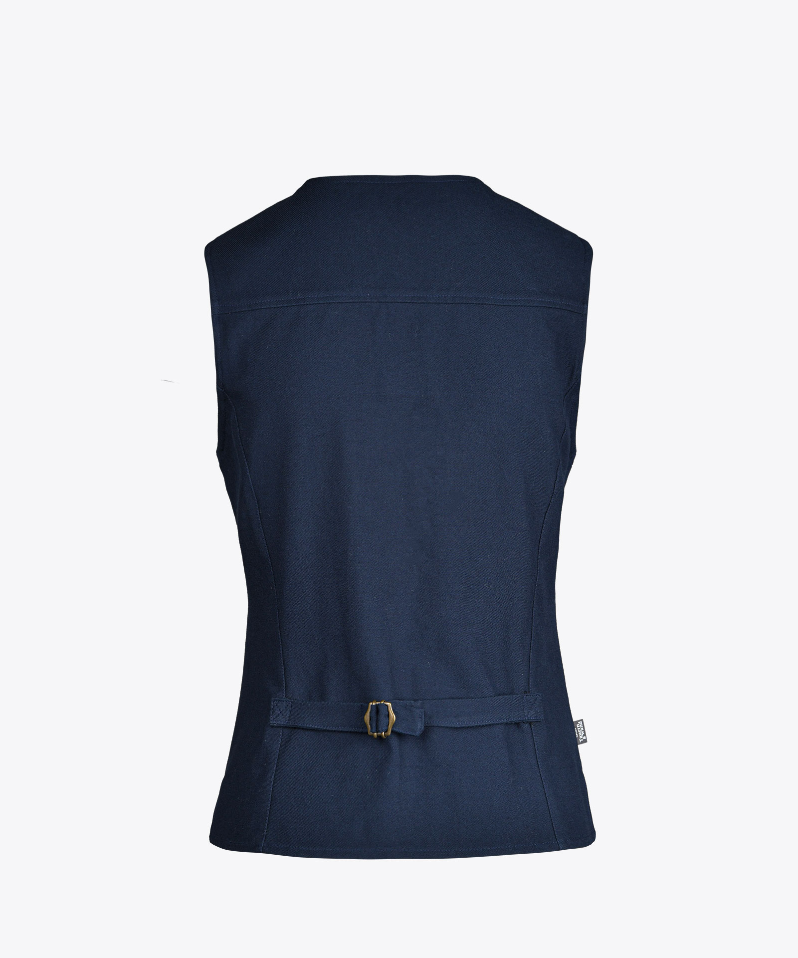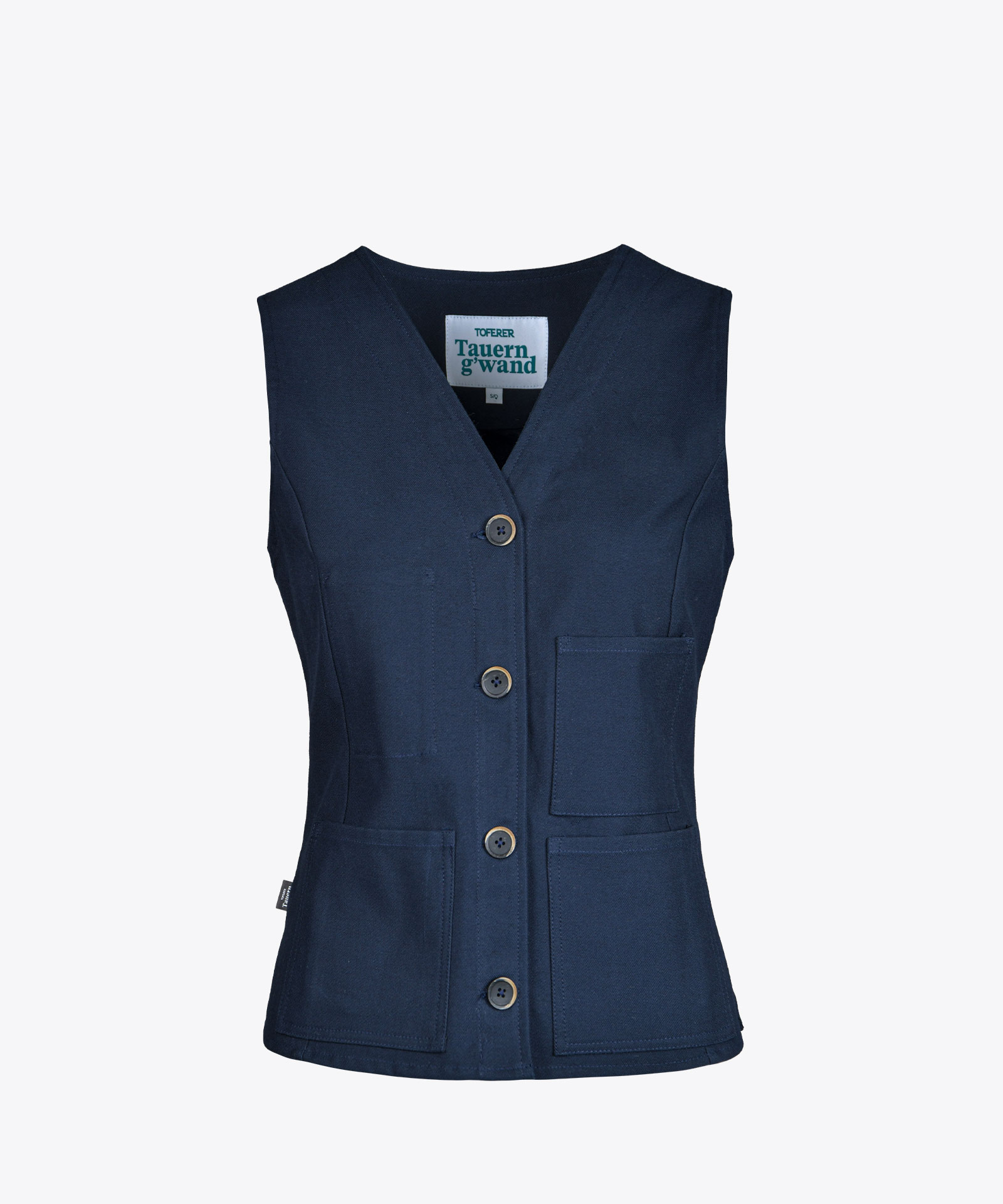 Ungefütterte Weste im Workwear-Style mit funktionalen Taschendetails außen und innen; verstellbarer Rückenriegel; V-Ausschnitt; pflegeleichte, robuste Twillqualität in nachhaltiger Fasermischung