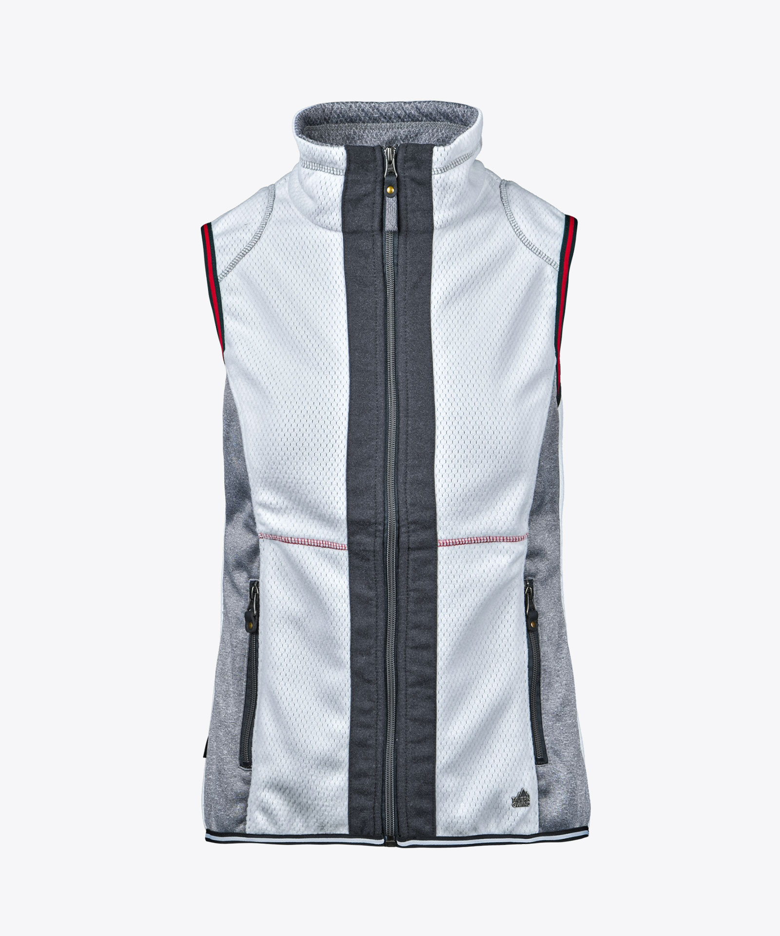 Fleeceweste in Wabenstruktur an der aufgerauten Fleeceinnenseite; elastisches Knitshell-Material an den Seiteneinsätzen in Melange; Blende entlang Frontzipp in Woll-Look; hochgeschlossener Kragen; Kontrastierung an Zipps und Elastikeinfassung an Saum und Armabschluss; zwei Zipptaschen; Echtleder-Zippangreifer