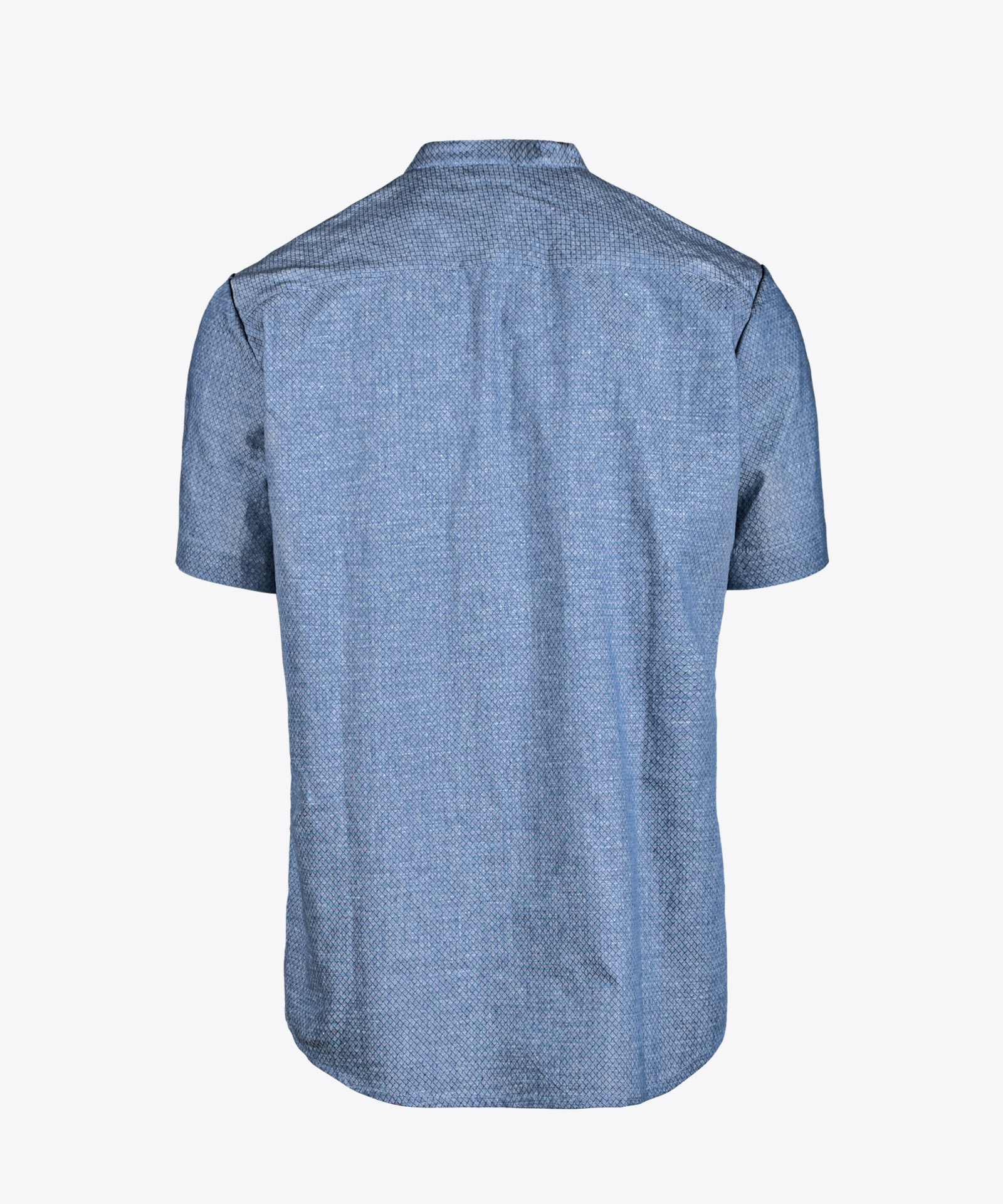 Kurzarm-Variante von Modell JOIS; Hanffaser-Qualität in Rautendesign; verkürzte Knopfleiste; gerundeter Saumabschluss; Herren mit Feststellmöglichkeit zum Hochstülpen der Ärmellänge;