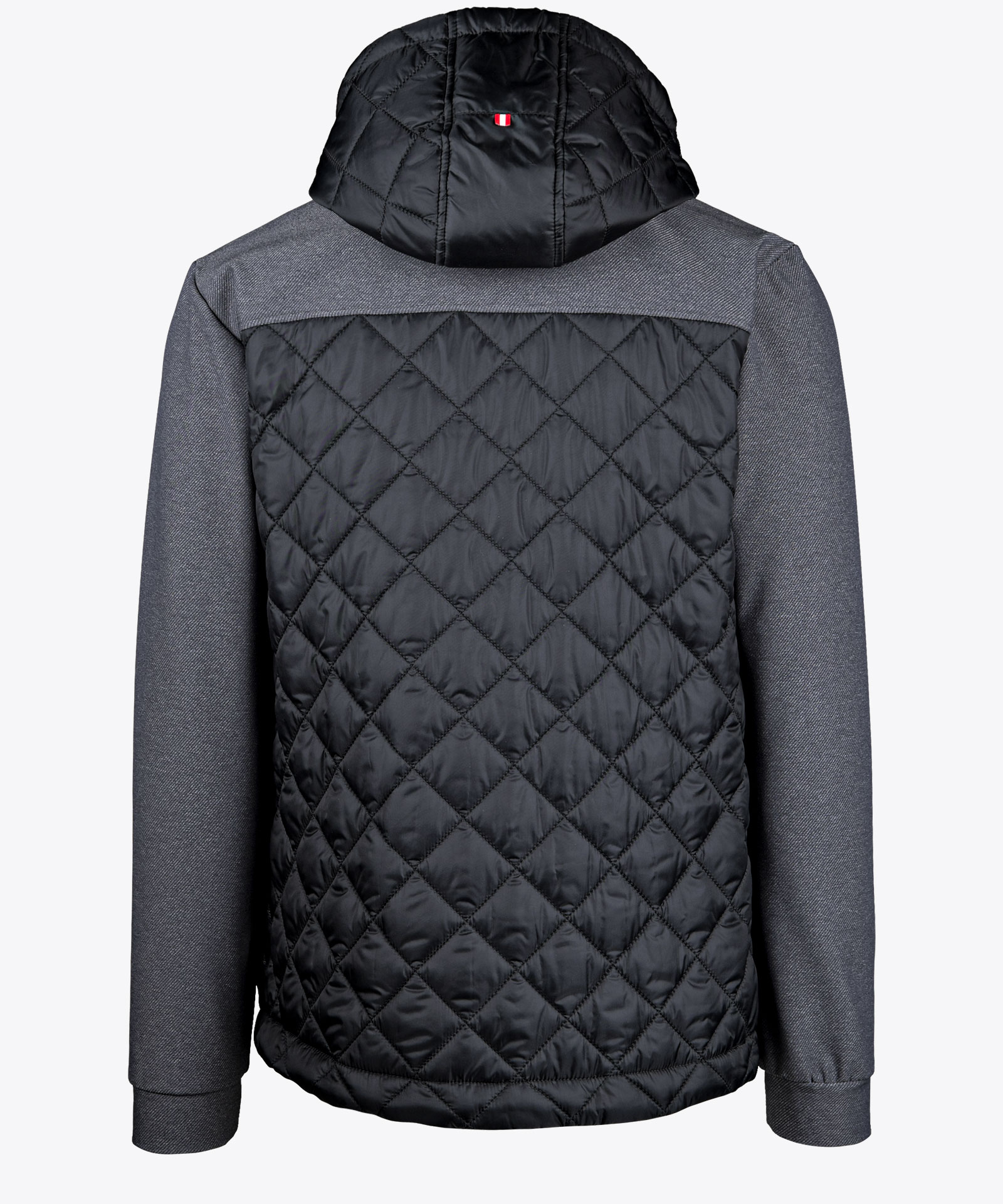 Gerade geschnittene Leicht-Steppjacke in Rautenstepp-Design; mit Kontrastmaterial in meliertem Twill-Softshell; Fleeceinnenseite; metallischer Farbeffekt an Frontzipp und quer liegenden Brusttaschenzipps; zusätzlich seitliche Zipptaschen-Eingriffe; Ärmelabschluss mit anliegender Bundverarbeitung; Jackensaum innen mit Gummikordel weitenregulierbar; angeschnittene Kapuze mit Kordelband; ungefüttert