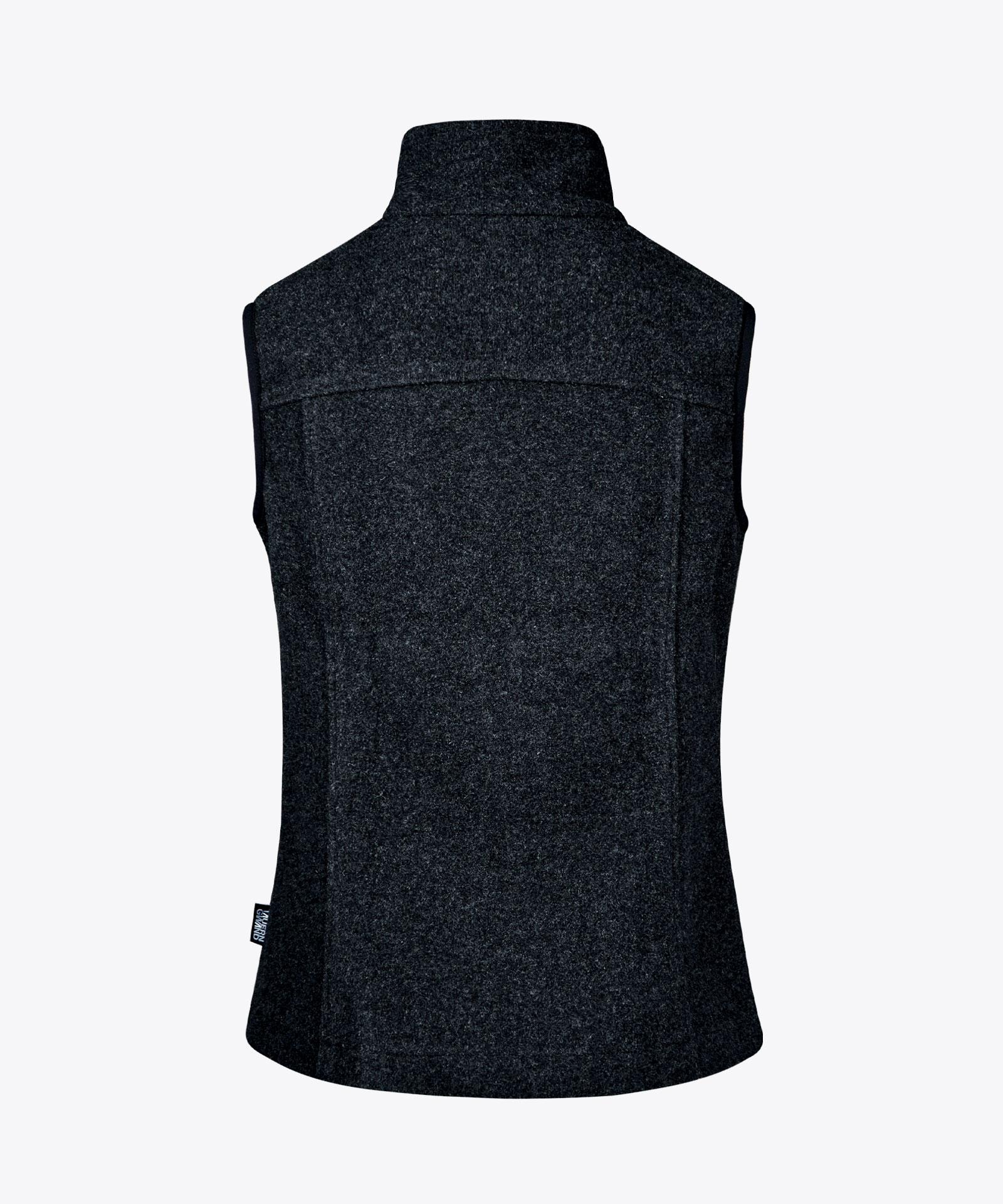 Walkgilet in Wollmischung, doppelseitiger Strick mit recyceltem Wollanteil an der Außenseite; Mesh-Struktur auf der Rückseite; Modell ohne Farbkontraste; Frontzipp mit hochschließendem Kragen; zwei verdeckte Zipp-Eingriffstaschen; ungefüttert