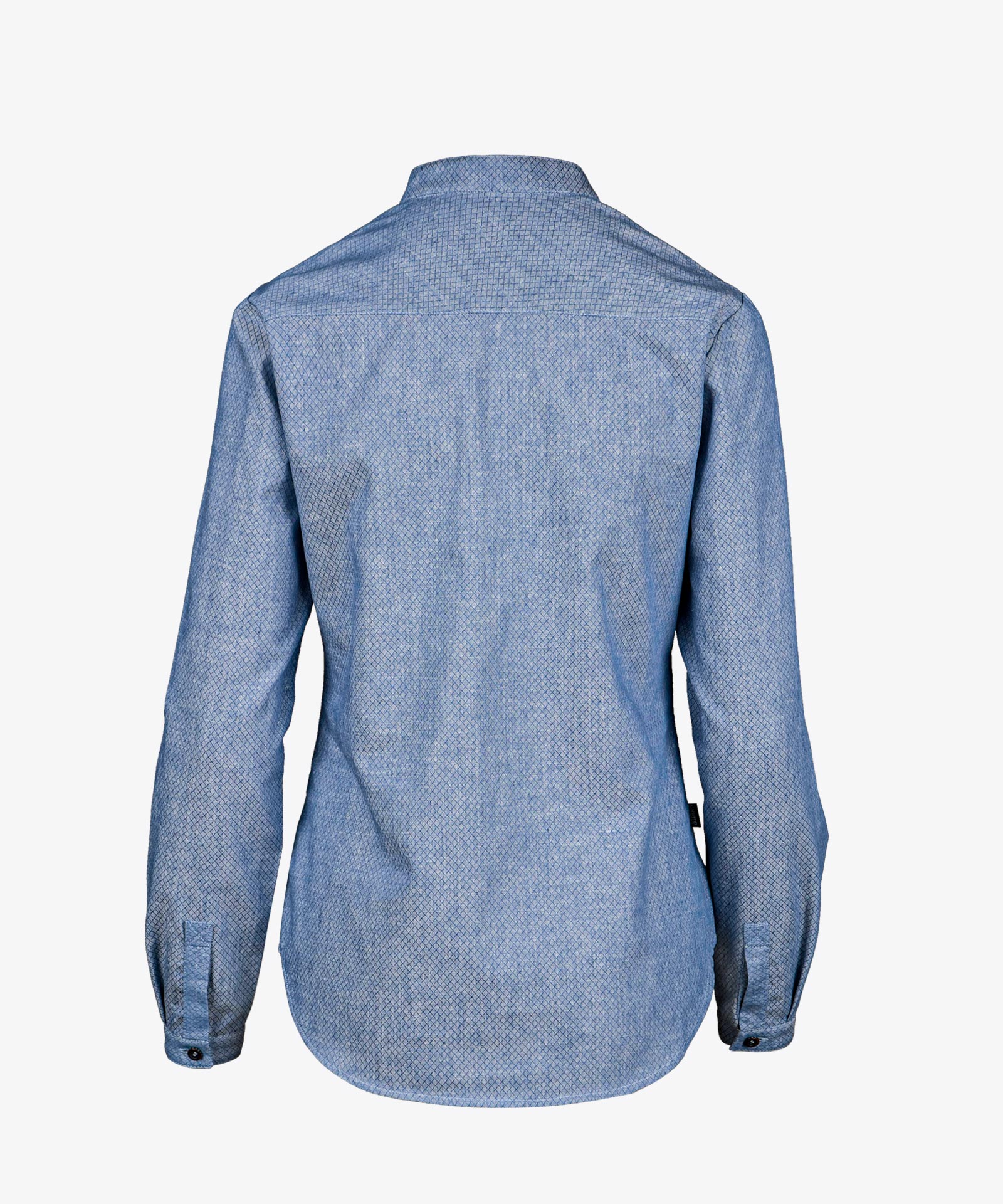 Hanffaser-Qualität in Rautendesign; verkürzte Knopfleiste; gerundeter Saumabschluss; Damen mit kurzem Seitennahtschlitz und leichter Raffung an Schulternaht; Stehkragen Material: 70% Baumwolle, 30% Hanf