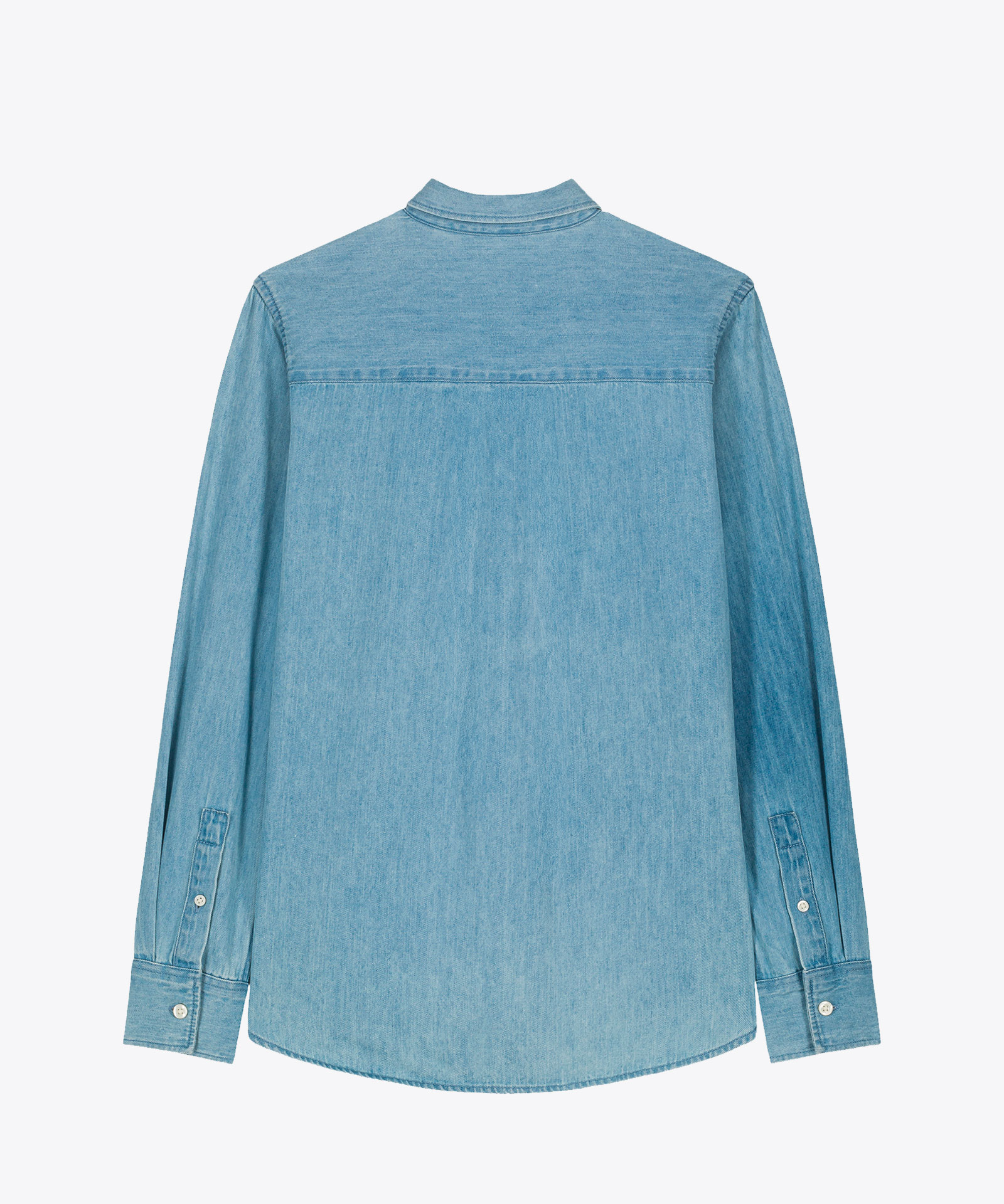 Das Damen-Jeanshemd, normale Passform, Spitzkragen mit Einzelnadelsteppung, Kragensteg mit