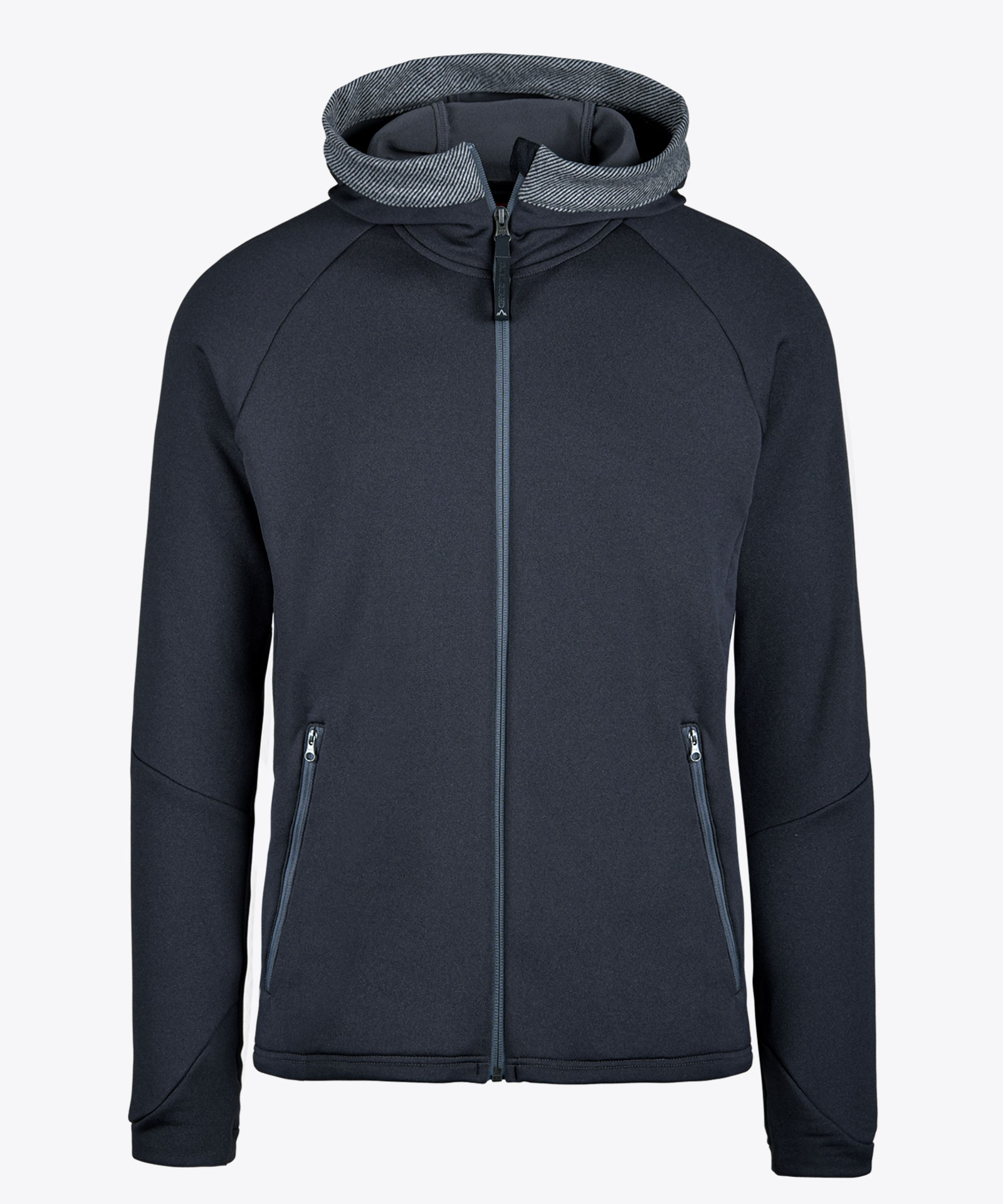 Angenehm weiches Tragegefühl in hochwertiger 4-Wege-Tecno-Stretch-Fleecequalität mit hoher Bewegungsfreiheit trotz figurbetonter Passform; glatte Oberfläche mit Mélange-Effekt, aufgeraute Innenseite, gute Wärmeisolation; Frontzipp und zwei Zipptaschen in Kontrastfarbe; angeschnittene Kapuze mit Kontraststoffeinfassung, optional für Wording-Logo-Druckgestaltung